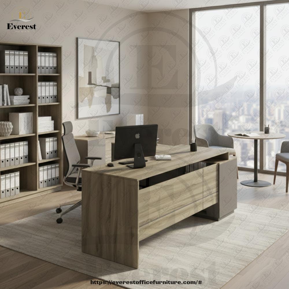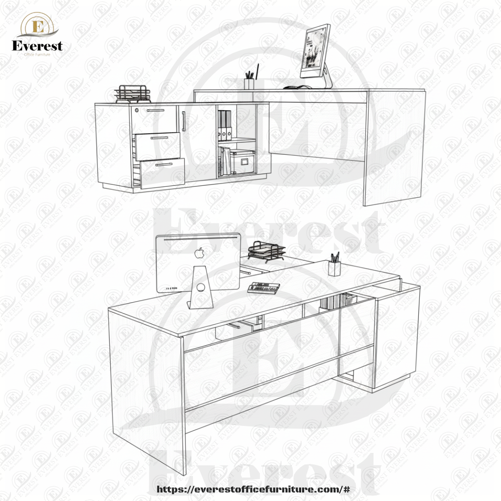 مكتب خشب mdf مقاوم للاحتكاك تخانه 24مم مرتكز علي سايد محتوي علي وحده ادراج 3درج كالون قفل مركزي بمجري تليسكوبي +دلفه بكالون +رف فارغ